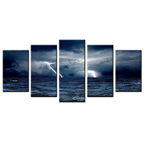 -. Title : KuyiArt- 5 Panel Canvas Wall Art,Seawave,Framed Art and Stretched Prints for Wall Decoration,Giclee Prints on Canvas, Ready to Hang