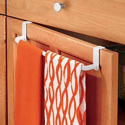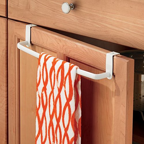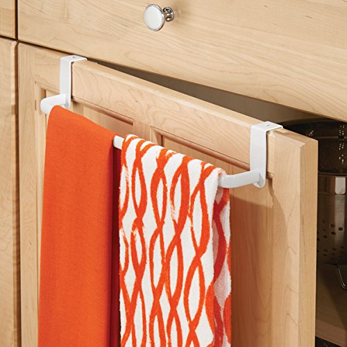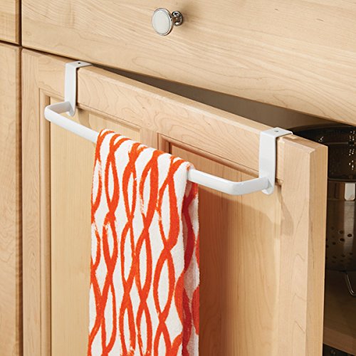 mDesign Over-the-Cabinet Kitchen Dish Towel Bar Holder - 14", White