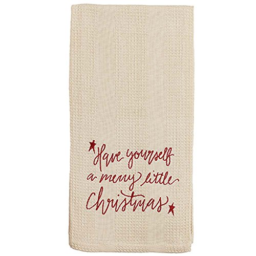 Merry Little Christmas Red Script Small 19 x 28 Embroidered Cotton Waffle Dish Towel