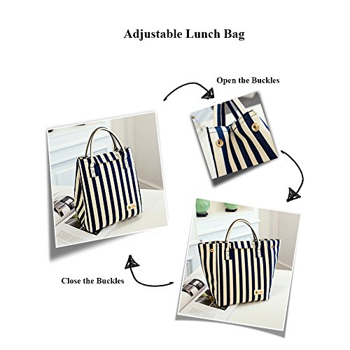 - Buckle on the two side,you can adjust the bag capacity follow your need,when you need more space for your food,open the buckle,fit your lunch containers,water bottle and fruit.