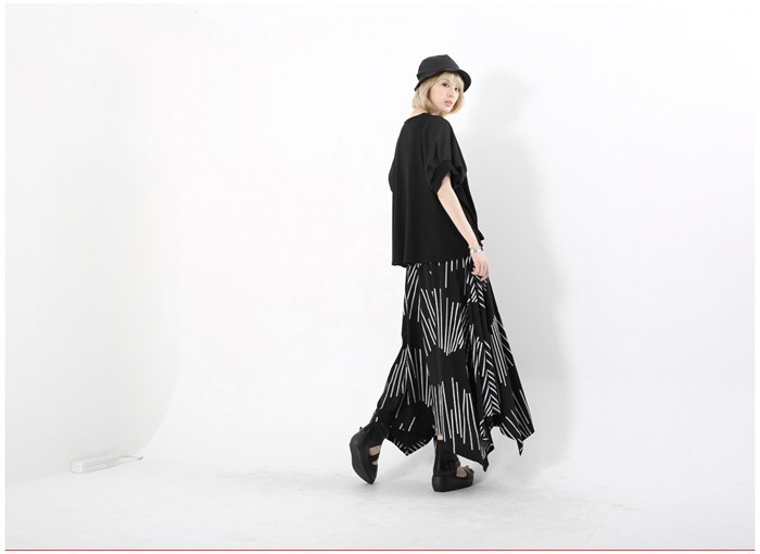 商品名:ワイドパンツ レディース スカート風パンツ 個性的 柄 夏 2018 モード系 個性的 40代 ファッション