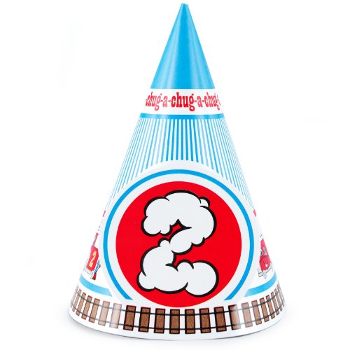 -. Title : 2nd Birthday Train Party Supplies - Cone Hats (8)