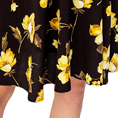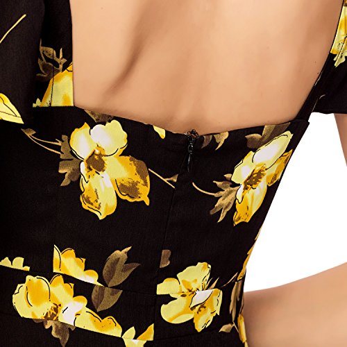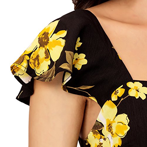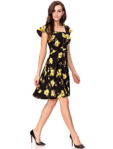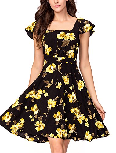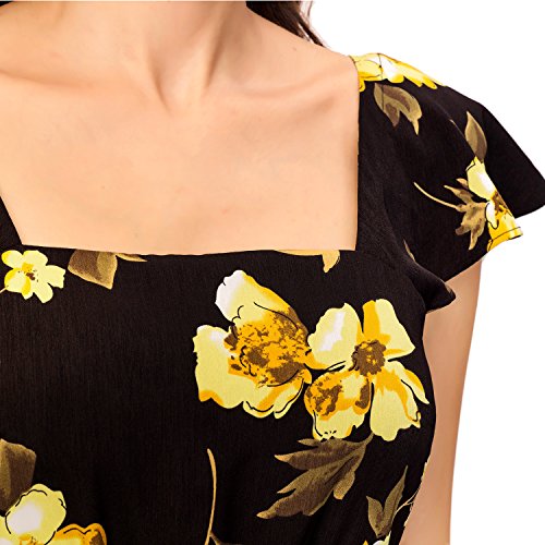 Noctflos Women's Black Contrast Floral Print SquareNeck Butterfly Sleeve Open Back Casual Swing Dress