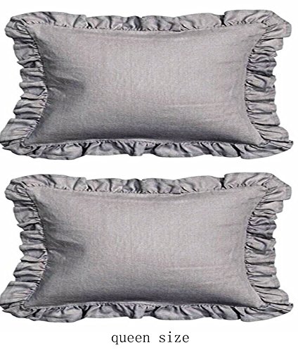 Hem Ruffle Pillow Case Pillow Protector Cover Cotton Meaning4 Gray Grey Queen Size Set of 2 20 x30inches