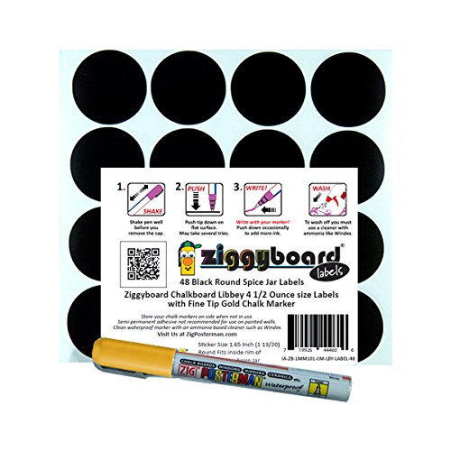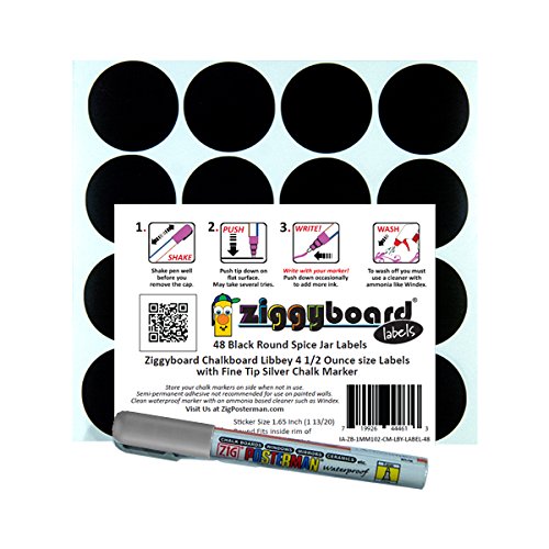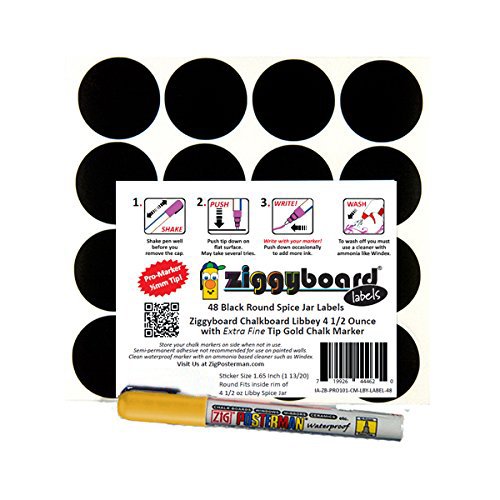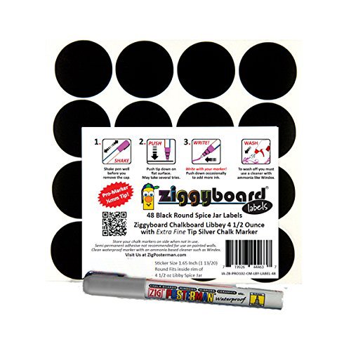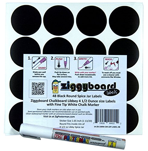 Ziggyboard Chalkboard for Small Spice Jar size Labels with Chalk Marker fit Libbey 4 1/2 Ounce (White, Extra Fine Tip 1/2mm Chalk Marker)