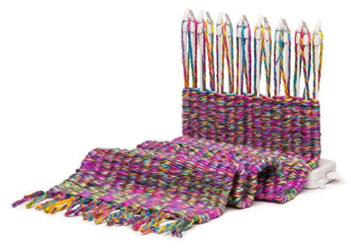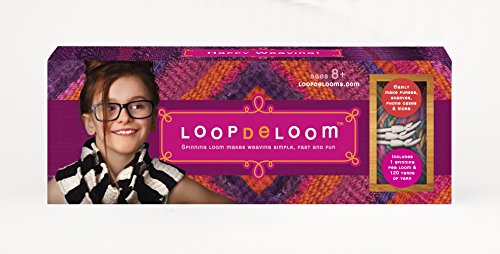 Weaving just got fast and fun! Loopdeloom is an ingenious new loom design with spinning pegs that speeds up the weaving process and makes it super simple. The winner of multiple prestigious toy and craft awards, it's simple to set up, it's simple to use, and it's surprisingly fast. So many things you can create, so many beautiful possibilities. Make anything from small basic potholders to large complex items with intriguing patterns. Weave purses and cell phone cases, scarves, wraps, baskets, throws and more. You can weave items any length, and up to 7" wide using one loom. Connect two or more looms together to weave wider items with no seams - genius! Say goodbye to traditional looms, we're putting a new spin on weaving! Kit includes 1 spinning peg loom and 120 yards of yarn to get you started.Awards