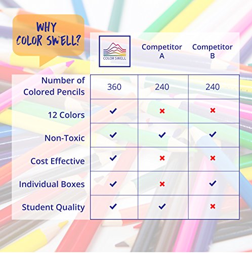 - STUDENT QUALITY AND TEACHER APPROVED FOR UNLEASHING YOUR CREATIVITY - Color Swell bulk color pencils are education quality, comparable to major brands at a budget friendly price, designed with 7 inch barrels pre-sharped and offer smooth coloring consistency great for your style of blending, shading, and other creative drawing techniques