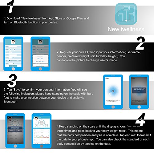 - Free APP & Smart Syncs: Works with Bluetooth 4.0, download APP for FREE by scanning QR code on user manual or Searching “New iwellness”in Apple Store/Google Play. Supports Android 4.3 & IOS 8.0 or above system.