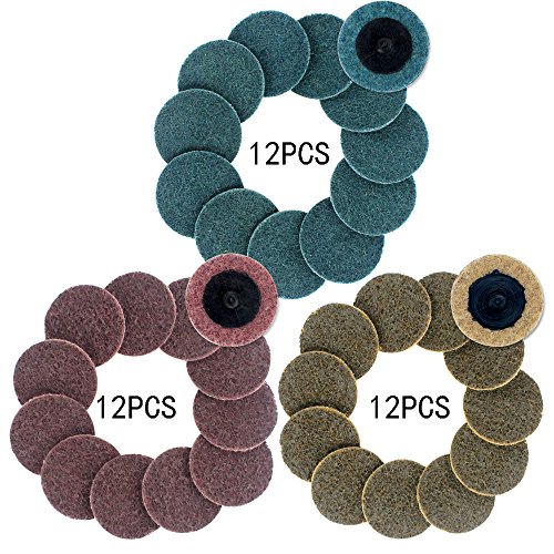 Coceca 36 PCS 2 Inch Quick-change Discs Mix Roll Lock Sanding Discs(Fine/Medium/Coarse Pads) Roll Lock Surface Conditioning Sanding Discs Resin Fiber Disc R-Type