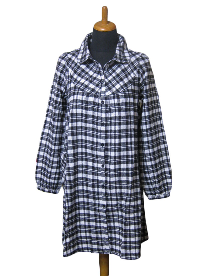&.nostalgia ☆チェック柄 シャツワンピース <M ホワイト×ブラック>