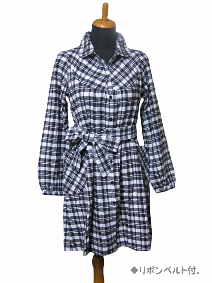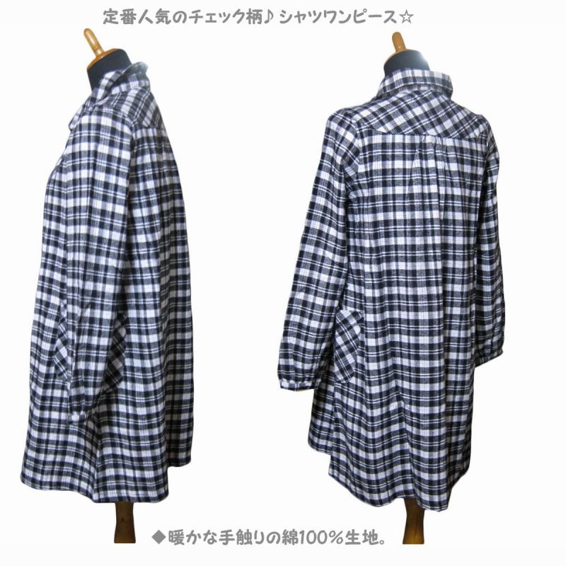 シャツワンピ チェック チュニック ワンピース チュニックワンピ 長袖 秋冬 &.nostalgia