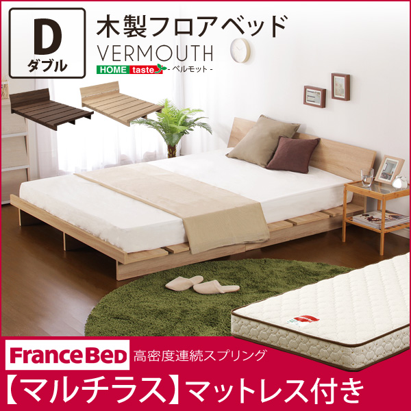 木製フロアベッド【ベルモット-VERMOUTH-(ダブル)】(マルチラススーパースプリングマットレス付き)