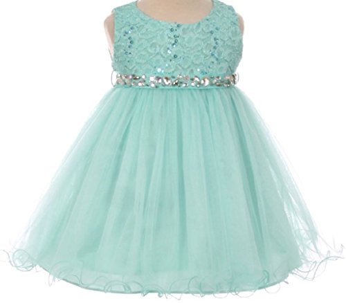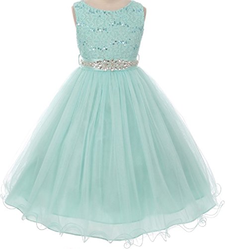 Beautiful sleeveless tulle dress that features a gorgeous bead embellished waist that gives the dress pizzazz. The bodice is embroideJade with lovely eye catching sequins. Sash can be tied in the back to your desiJade fit. The tulle skirt features a curled hemline.Feature