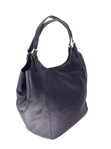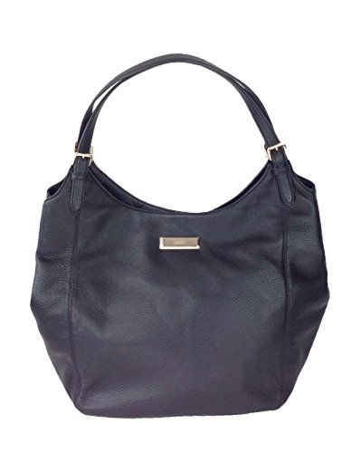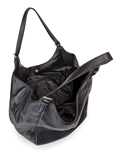 -. Feature : Over-sized slouchy hobo tote in soft pebble leather. / Front engraved logo plaque. Goldtone hardware / Duel top handles w buckle detailing. 9" drop. / Magnetic closure. Signature lining. Interior zip pocket & slip pockets. / 17" L x 14 1/2" H x 7" W