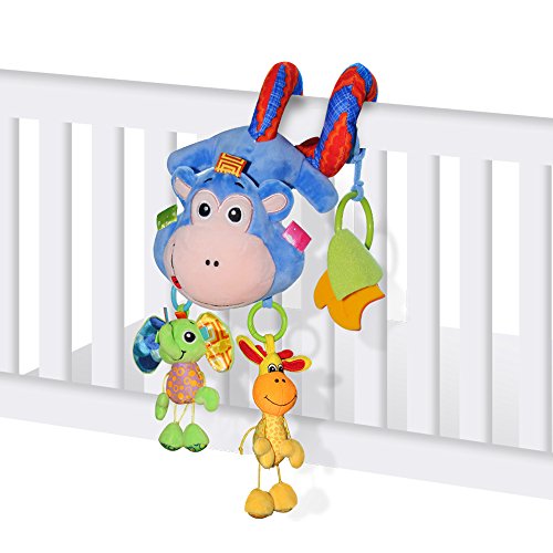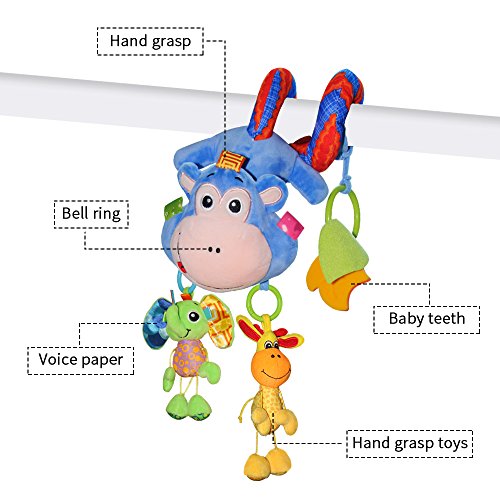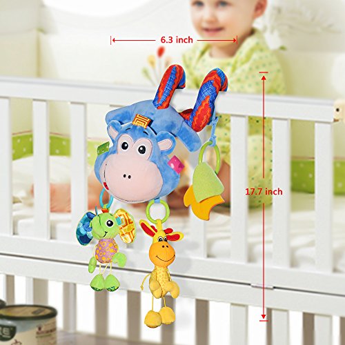 Product features :HOULWOND crib activity spiral is a extended edition.Bright color,shapes and fun prints engage early visual stimulation.It's full of flexibility with plush toys,such as naughty monkey,elephant and glraffe which could be taken down.The colorful hanging activity spiral also include ring bell,leaf teether.Great for attaching to prams,infant carriers and crib rails.