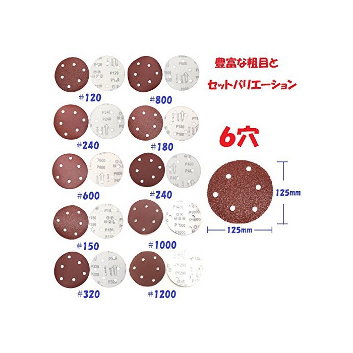 원본상품명:ダブルアクション マジック ペパ サンダ用 125mm 6穴 各種 100枚 セット (04:#600 #800 #1000 #1200 各25枚)