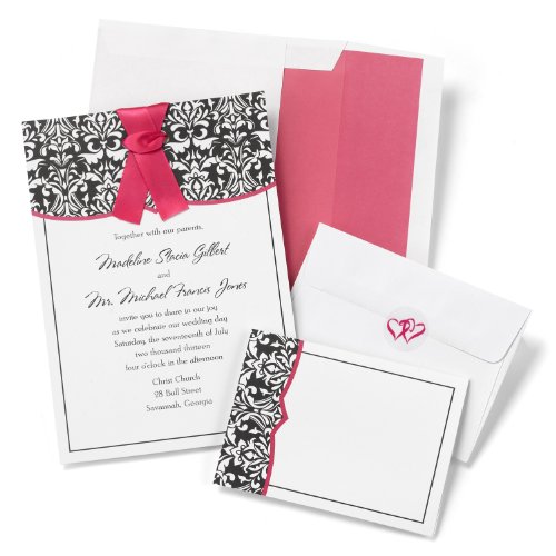Hortense B. Hewitt Wedding Accessories Classic Damask with Fuchsia Invite Kit