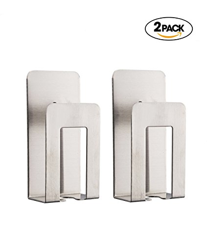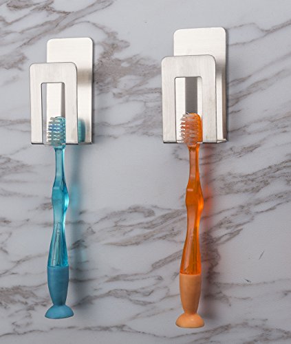 Caeser Archy Stainless Steel Toothbrush and Gargle Cup Holder, No Drilling Electric toothbrush Shelf Mug Hanging Stand with 3M Adhesive (2 pack)