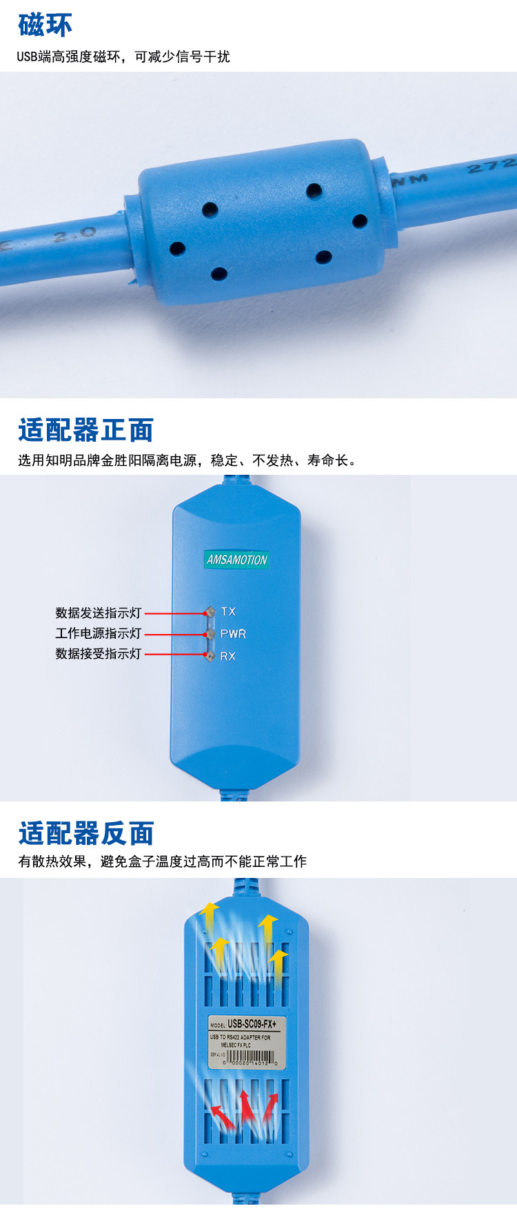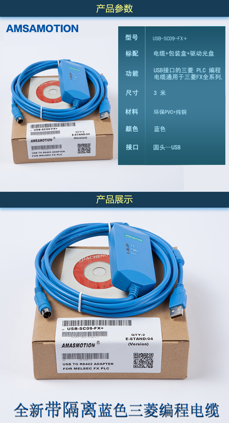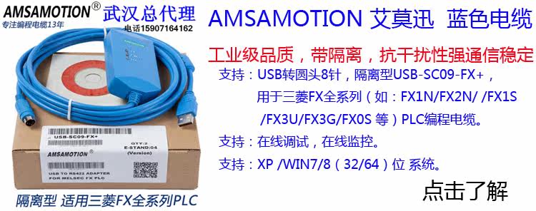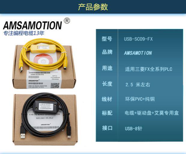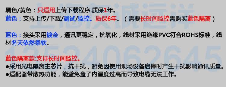 用 途:USB-SC09-FX,适用于三菱FX1N/2N/1S/3U等系列PLC(上传下载(传程序)是没有问题的,监控调试 请买蓝色的)。