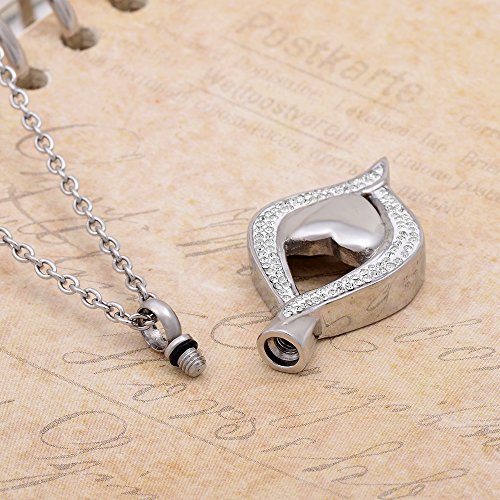 -. Feature : 1. Premium Quality Medical Grade 316 L Stainless steel pendant :Green high-grade green jewelry - it is completely not produce any side effects on the human body ,with the high grade chain will never rust, corrode, rust or stain. Very solid and indurate, you do not need to worry about its quality issues. / 2.Free 20 inch chain: 2MM width:316 L Stainless steel Chain and Velvet Gift Pouch included.High polished shiny surface, sturdy solid links of the chain ensures its sturdiness . / 3.Holds Small Amount of dried flowers, dirt, special messages, hair, perfume, cremains & ashes .Wonderful keepsakes and memorials,this unique piece of jewelry will help keep memories of your loved ones near to your heart / 4.Great gifts for lover, wife, girlfriend, mother, friends. Well celebration presents on wedding anniversary, birthday, Valentine's Day or Christmas,every time when you want memorial you loved one. / 5.Satisfaction: 30 Days Money Back Guarantee - When you order today, you're protected by WARRANTY TIME of the product and customer service!