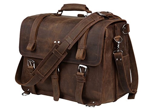 -. Binding : Personal Computers -. Brand : polare -. Department : mens -. Feature : Item Net Weight:2.15KG (4 lbs. 11oz.). / Fits 17 inch laptops. / Item Dimensions:44(L)*20(W)*33(H)cm /17.3*7.9*13 inch. Handle is approximately 5" inches. / Material:Made of Rich Genuine Cowhide Leather imported from Italy. The Hardware parts are made of Silver Bronze Tone. / Hand Made by professional artisans, this beautifully crafted bag is reinforced with tough industrial grade stitching that will only get better with age.Wear it as a laptop bag, messenger bag, shoulder bag, briefcase, and/or backpack. -. ProductGroup : PC Accessory -. ProductTypeName : CARRYING_CASE_OR_BAG -. Title : Polare Men's Natural Cowhide Leather Shoulder Travel Bag Satchel Briefcase Backpack ¡