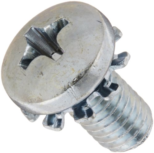 Steel Machine Screw, Zinc Plated Finish, Pan Head, Phillips Drive, Meets ASME B18.13, External-Tooth Lock Washer
