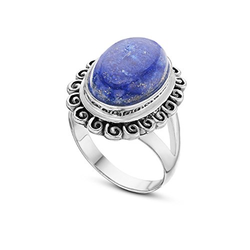 -. Title : 925 Sterling Silver Statement Ring Natural Gemstone Oval Frame Ring For Women
