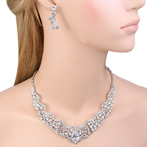 -. Binding : Jewelry -. Brand : EVER FAITH -. Department : womens -. Feature : [!]EVER FAITH® is a US registered trademark and Ever Faith Jewelry is its only owner. / Length: 47cm(18.5")-54cm(21.2"). Necklace Pendant Size: 20cm(7.9") by 2.8cm(1.1"). Earring Size: 1.3cm(0.5") by 3.2cm(1.2") / Intended Use: Wedding/Mothers-day/Valentines-day/Anniversary/Birthday/Party/Prom/Christmas. / Wrapping: Come with some spare crystals, a gift box and a favor bag. If you need assistance please contact us.. If you need assistance please contact us. -. Label : Ever Faith -. Manufacturer : Ever Faith -. Model : N03081-2 -. MPN : N03081-2 -. PartNumber : N03081-2 -. ProductGroup : Jewelry -. ProductTypeName : FASHIONOTHER -. Publisher : Ever Faith -. Studio : Ever Faith -. Title : EVER FAITH Wedding Leaf Round Cluster Necklace Earrings Set Clear Zircon Austrian Crystal