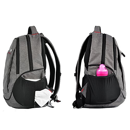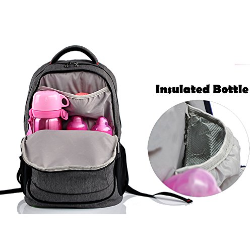 The main compartment has divide into 2 mesh pockets and a notebook pocket. Ultral large capacity with perfect compartment designed. 1 main pocket, 1 zipper pocket, 1 mesh pocket, 3 insulated warm bottle bags, and some other pockets for you.