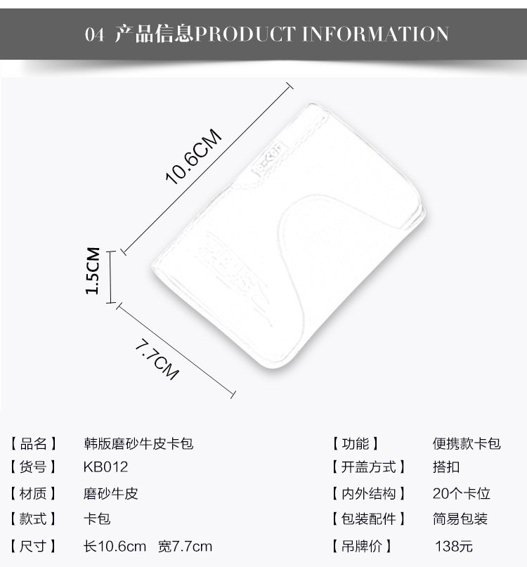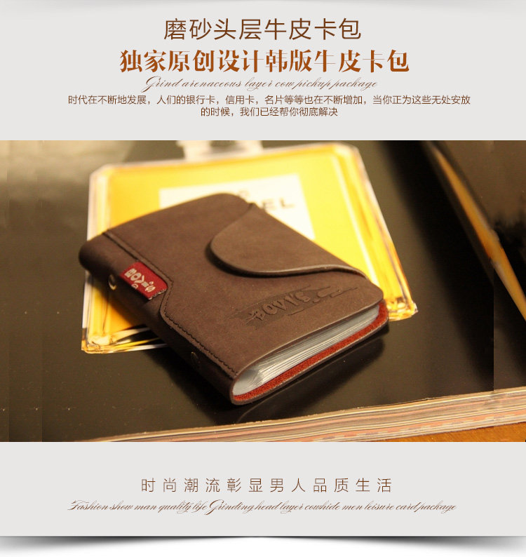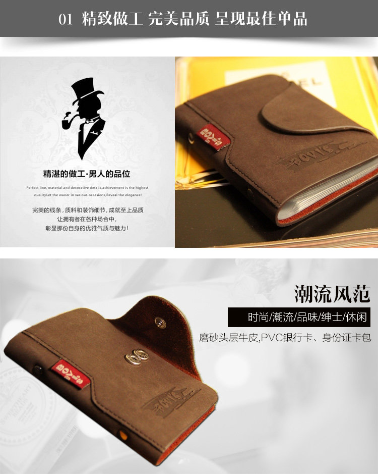 内部结构: 相片位 卡位质地: 牛皮皮质特征: 牛二层皮闭合方式: 搭扣形状: 竖款credit card pack card folder card sets 20-bitInternal structure: Photo bit card bitTexture: leatherCortical features: cow split leather