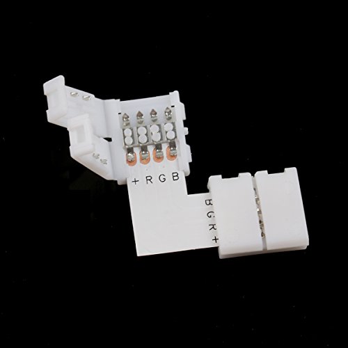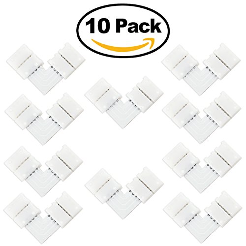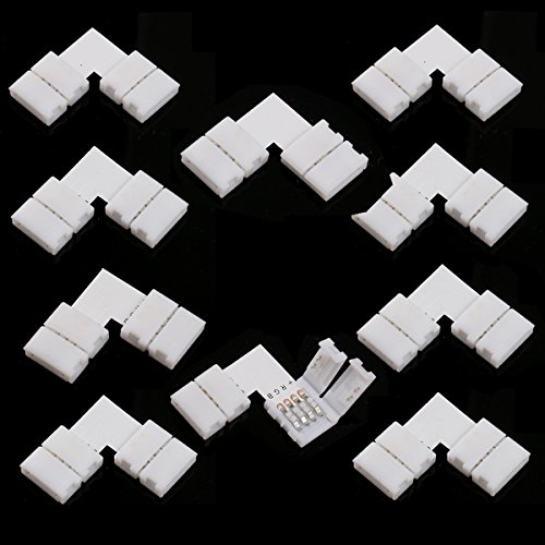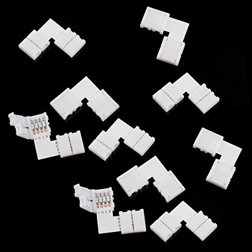 10 * LEORX 10mm L-shape 4-conductor Quick Splitter Right Angle Corner Connector for 5050 RGB LED Strip Light (White)