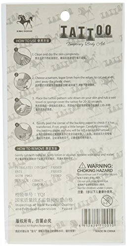 -. Feature : Size: 17CMx10CM(6.69"x3.94") / Easily water transfer on and remove by baby oil or rubbing alcohol / Use parts: Can be used in the skin, metal pottery, glass and other surfaces. / Attached to the waist, chest, neck, arms, back, legs, bikini, paste any position you like, you can also cover scars, etc.
