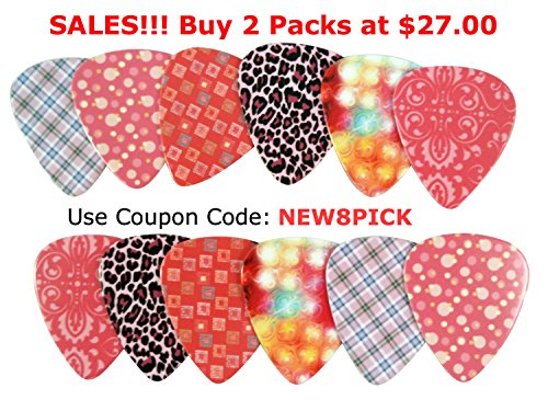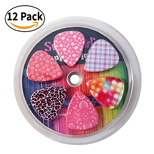 Guitar Picks for Girls - Medium Celluloid Assorted Variety 12-Pack Collection - Pretty Unique Designs Cool Pink Leopard - Best Gifts for Princess, Kids, Teens, Women, Ladies, Female Guitar Players
