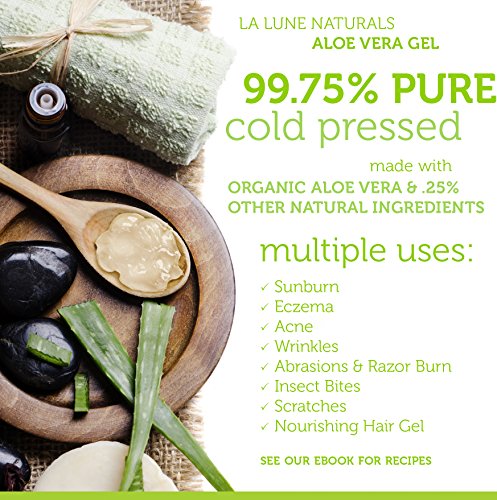 WE'RE PROUD OF OUR INGREDIENTS: Ask for our Certificate of Analysis! USDA Certified Organic Aloe Barbadensis, Citric Acid (preservative), Ascorbic Acid (Vitamin C as a preservative), Potassium Sorbate (a preservative to guard against bacteria), Xanthan Gum (natural thickener to help the aloe coat your skin better). WHY CHOOSE US? La Lune Naturals takes great care with all of our products to ensure you are getting the most pure and natural trustworthy ingredients possible. Our Whole Foods approved ingredients are as close to natural as you can get. See our list of non-toxic ingredients for more information on why we stand behind our top quality ingredients with a money back guarantee.