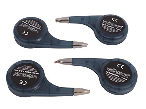 4-Pk Velleman Desoldering Wick Braid With Thumb Wheel Dispenser in Four Widths 1mm, 1.5mm, 2mm, 2.5mm
