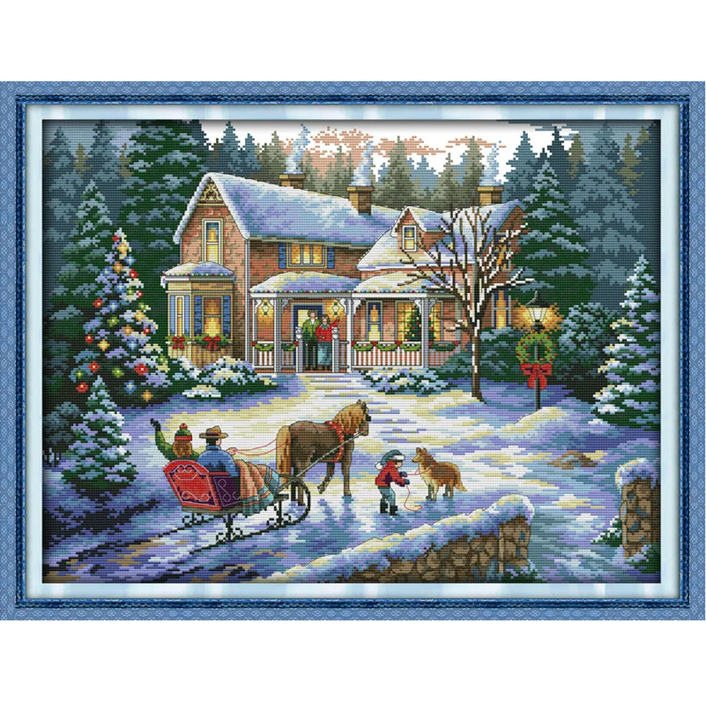 57*44cm DIY Handmade Counted Cross Stitch Needlework Set Embroidery Kit Christmas Scenery Home Decoration 14CT