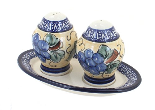 Polish Pottery Grapes Salt & Pepper with Cobalt Trim