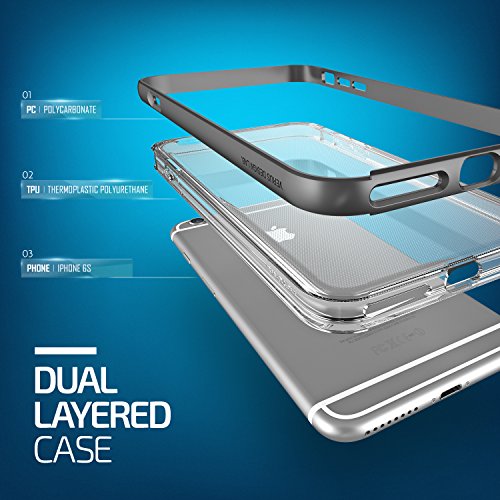 Impact-resistant Dual layers: constructed from high-grade TPU and polycarbonate, a soft, rubbery inside layer cushions the iPhone 6/6S from drops, while the hard, tough, outer layer encases the Device to shield from more serious collisions
