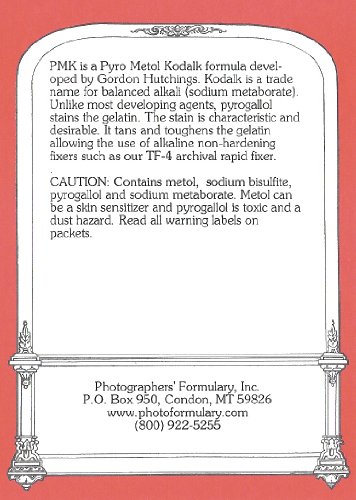PMK Pyro is a staining-type developer which yields fine grained negatives with superb sharpness and highlight detail