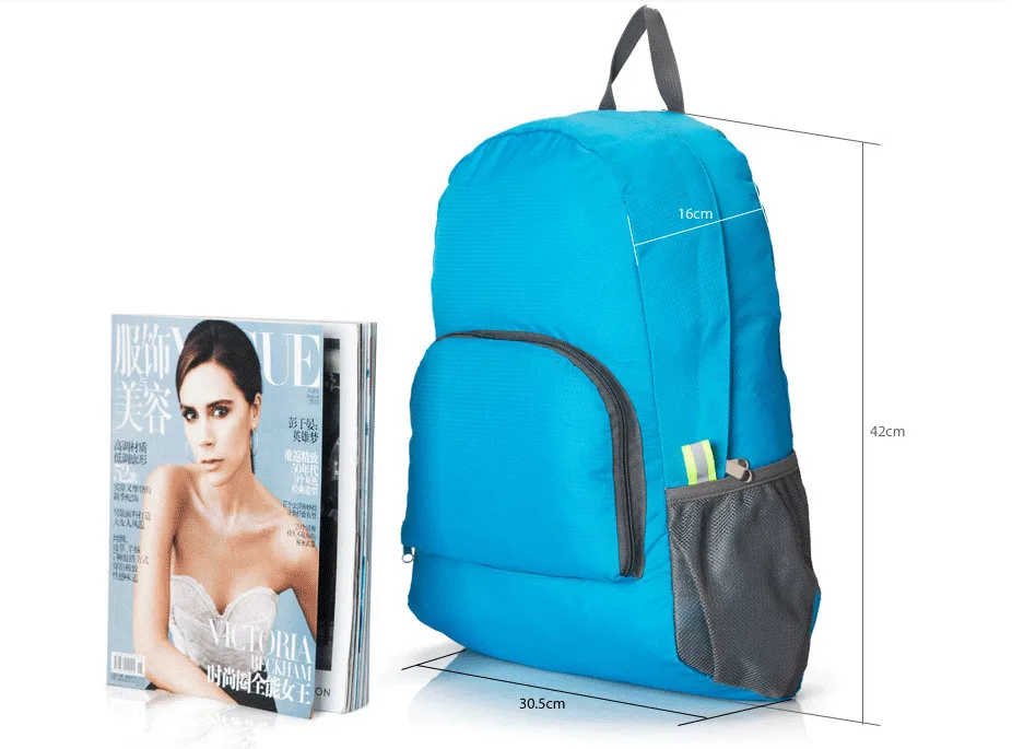 Outdoor folding bag, originated in the climber of the invention. Climbers in the final camp, the need to impact the peak, it is impossible to carry and stupid and heavy large mountaineering bag, so there is such a package, his request is: t