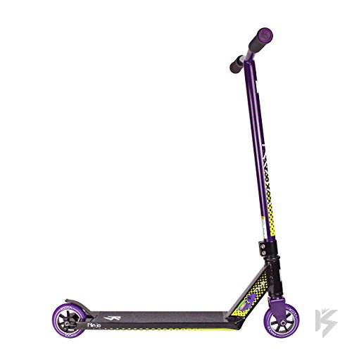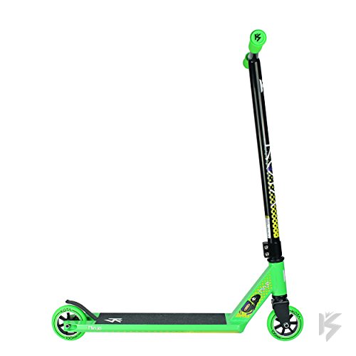-. Feature : SKILL LEVEL: Beginner to Intermediate Rider, WEIGHT: 7.7 lbs / DECK: 4.5" W x 19.5" L Aluminum, HEADSET: Standard with 81 Degree Headtube / COMPRESSION: Mini HIC for easy assembly, CLAMP: Aluminum Double Clamp, FORK: Steel Fork for Stability / BARS: 21.5" T x 20" W Steel Standard 31.8mm Size Bars, GRIPS: ODI Kota Signature TPR Grips / WHEELS: 100 x 24mm 7 Spoke Metal Alloy Core, BRAKE: 2 Bolt Brake