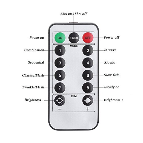 - With a remote,you can easily turn on/off the lights;set them in timer to auto on and off each day;adjust the brightness;switch to the mode you want