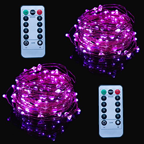 2 Pack String Lights Purple Viewpick 10M 100 LEDs Fairy Lights Remote Wireless Dimmable LED String Lights Flexible Copper Wire Battery Operated
