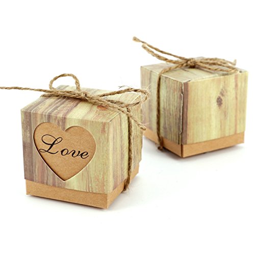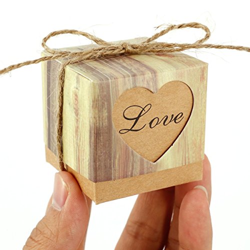 Dproptel DIY Heart Love Rustic Sweet Laser Cut Candy Gift Boxes Wedding Favour Box Party Favours - Pack of 50