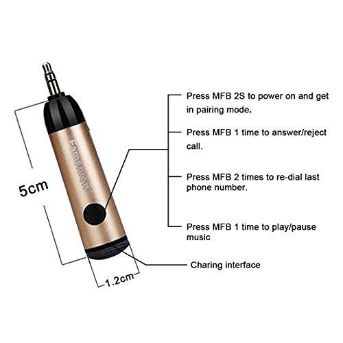 Bullet Bluetooth Receiver AUX Audio and Bass Boost Adapter for Car AUX / Home Stereo /Headphone/ Speaker/ PC/ Earbuds with Bluetooth 4.1 Gold