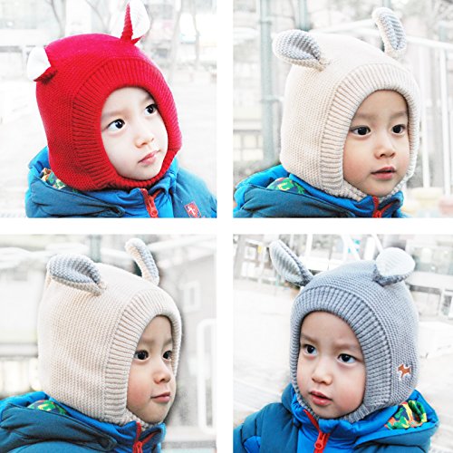 Thick knitted hood with animal ears keeps head & ears warm and fully covered. lovely, cute style coif hood and a perfect gift to kids (unisex design: for boys and girls)
