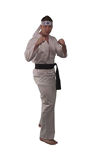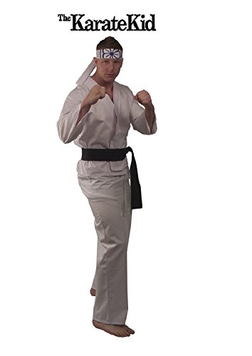 -. Brand : Karate Kid -. Department : mens -. Feature : Includes: Shirt with embroidered patch, pants, belt and headband / Officially Licensed -. ProductGroup : Apparel -. ProductTypeName : APPAREL -. Title : The Karate Kid DELUXE Daniel Mens Replica Gi Costume
