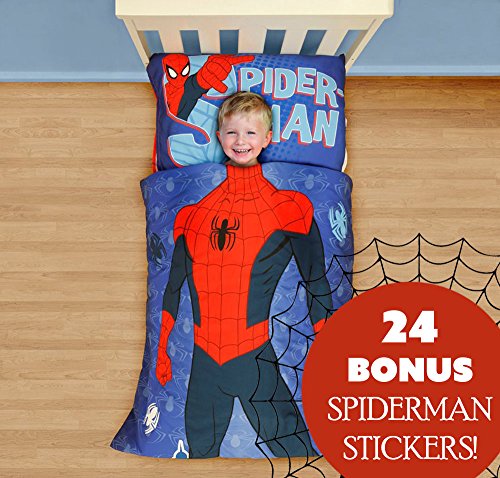 Marvel Spiderman Toddler Bedding and Wall Sticker Set Superhero Comforter Sheets and Wall Decals