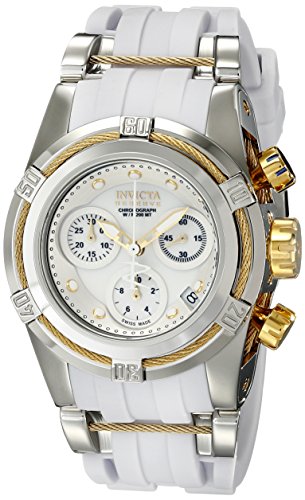 -. Binding : Watch -. Brand : Invicta -. Color : white -. Department : womens -. EAN : 0886678186242 -. Feature : Chronograph functions with 60 second, 30 minute and 1/10 of a second sub dials; date window between 4:00 and 5:00; invite reserve 5-year warranty included with shipment / White mother of pearl dial with gold tone and white hands and hour markers; luminous; unidirectional stainless steel bezel with 18k gold ion-plated stainless steel wire accent; 18k gold ion-plated stainless steel pushers and screw-down crown; flame fusion crystal; stainless steel case with 18k gold ion-plated stainless steel wire inserts; white polyurethane strap / Swiss-quartz movement / Case diameter: 38mm / Water resistant to 660 feet -. Label : Invicta -. Manufacturer : Invicta -. Model : 15279 -. MPN : 15279 -. PackageQuantity : 1 -. PartNumber : 15279 -. ProductGroup : Watch -. ProductTypeName : WATCH -. Publisher : Invicta -. Studio : Invicta -. Title : Invicta Women's 15279 Bolt Analog Display Swiss Quartz White Watch -. UPC : 886678186242