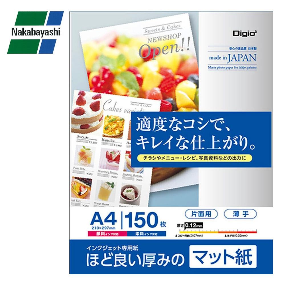 fk094igrjsチラシやメニュー・レシピ、写真資料などの出力にほど良い厚みのマット紙です サイズ 210×297mm 個装サイズ:22×2×30cm 重量 個装重量:920g 仕様 サイズ:A4 枚数:150枚 ISO白色度90% 製造国 日本 適度なコシで、キレイな仕上がり チラシやメニュー・レシピ、写真資料などの出力にほど良い厚みのマット紙です ご注文後3~4営業日後の出荷となります